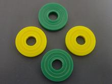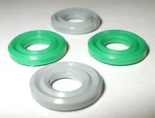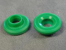 This washer has a top hat that pilots into the orifice of a post valve. It is available in green and white.